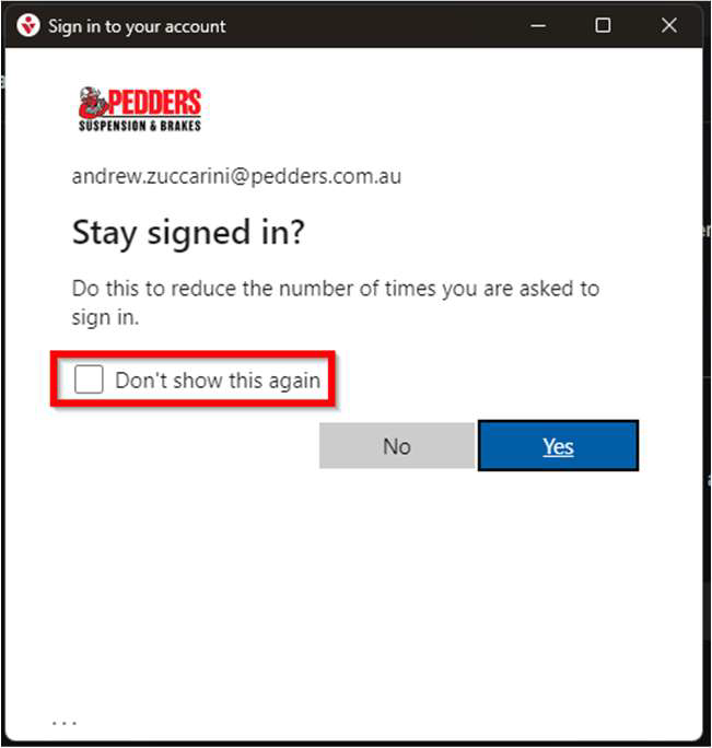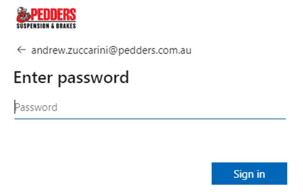 When presented with a Microsoft login page, enter your pedders.com.au email address, then click
