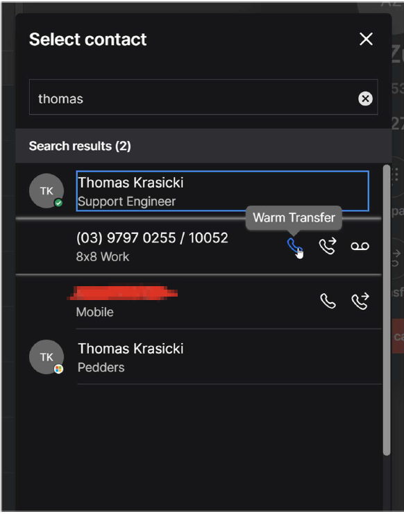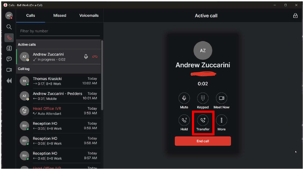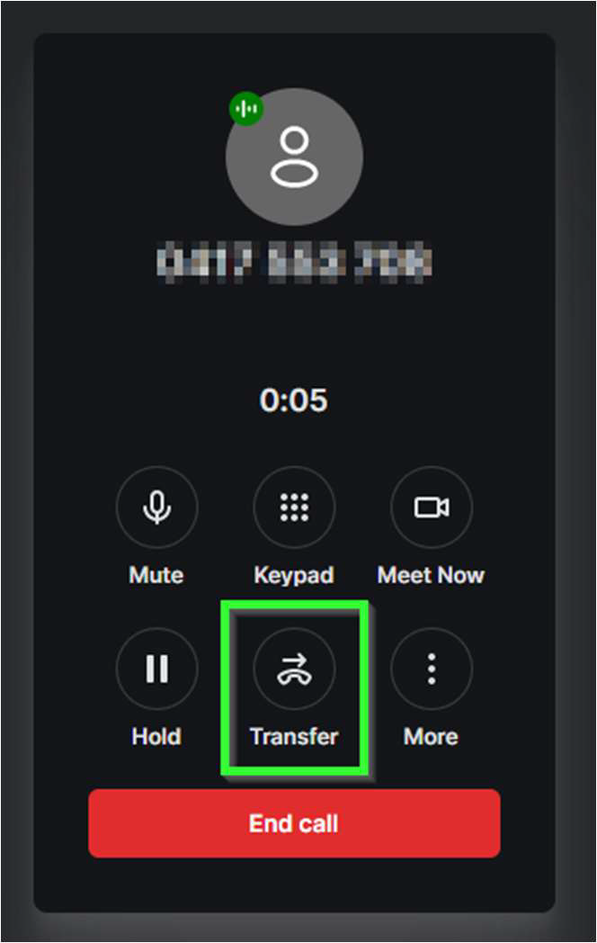 6. Once you have confirmed with the transferee select the transfer button to send the call