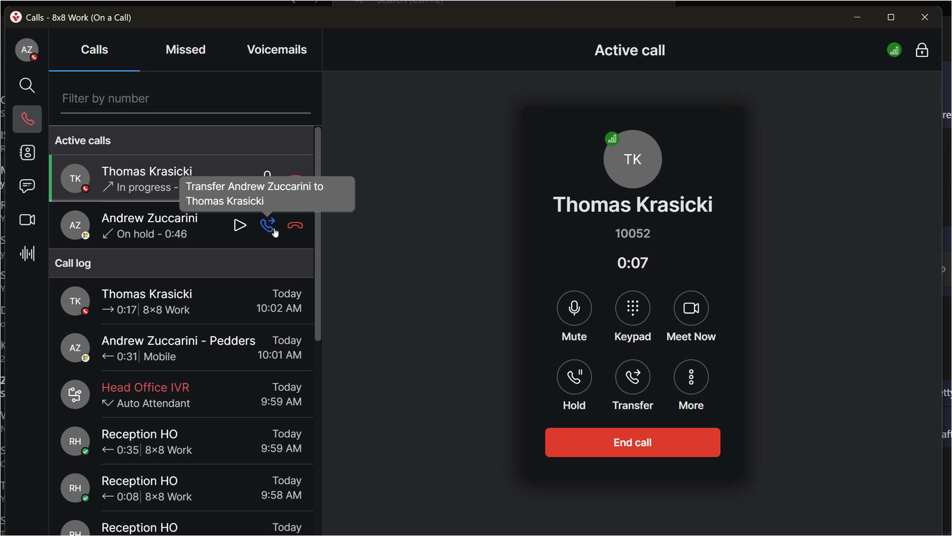 All devices must be logged in as the same user or this process will not work. In this example these steps will describe how to switch a call from the 8x8 Work computer softphone agent to the 8x8 Work mobile phone agent. While on the call, open the ...
