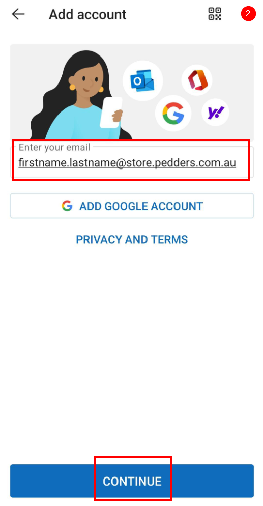 2. Enter your email address and select Continue