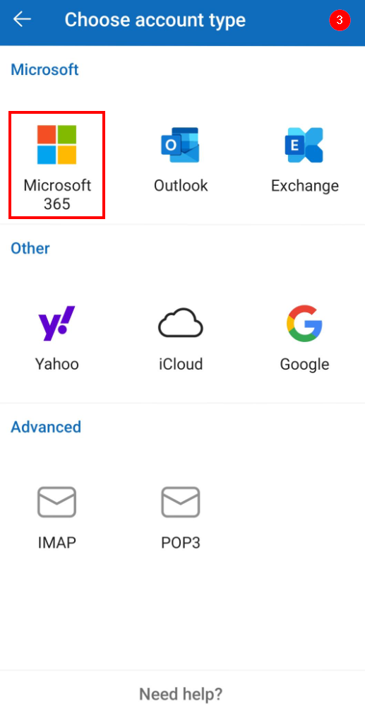 3. Select Microsoft 365 for your account type