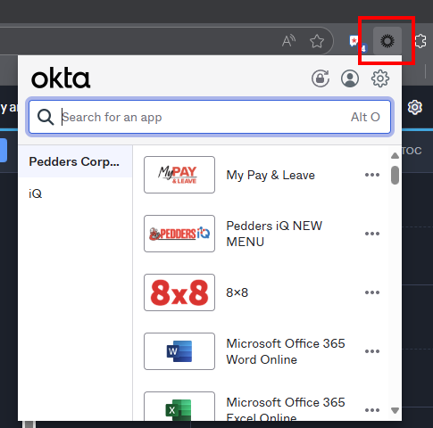 Alternatively your store PC has an OKTA browser plugin available, which can be used as a shortcut to access your apps or the OKTA homepage