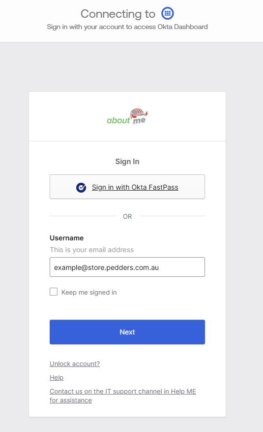 All staff have a unique OKTA username and login. If you are unsure of your OKTA login details or unable to log in, please have your manager submit a support ticket at