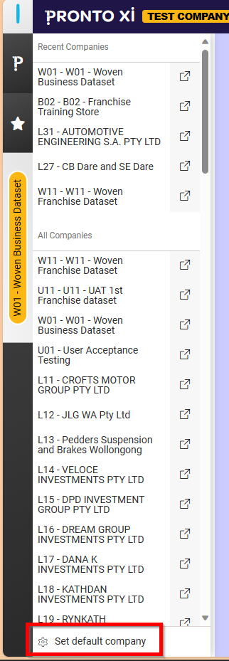And then hit 'Set default company' at the bottom left of the screen.