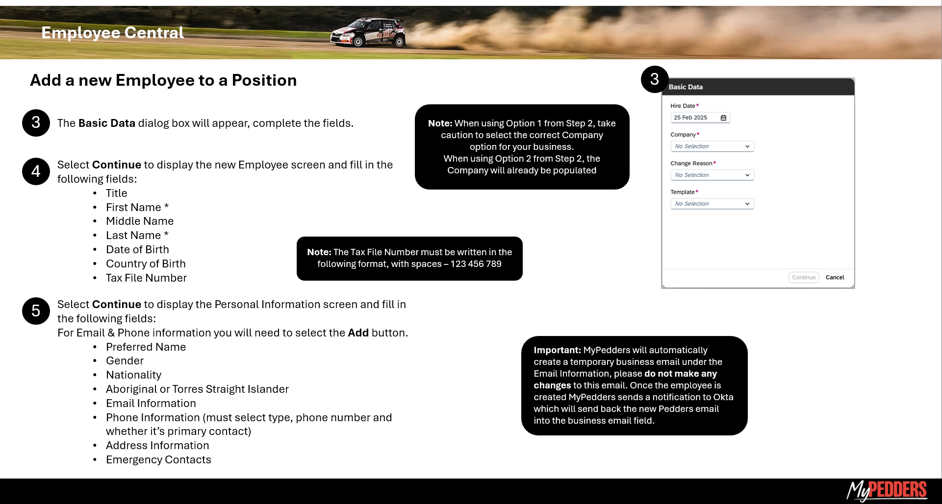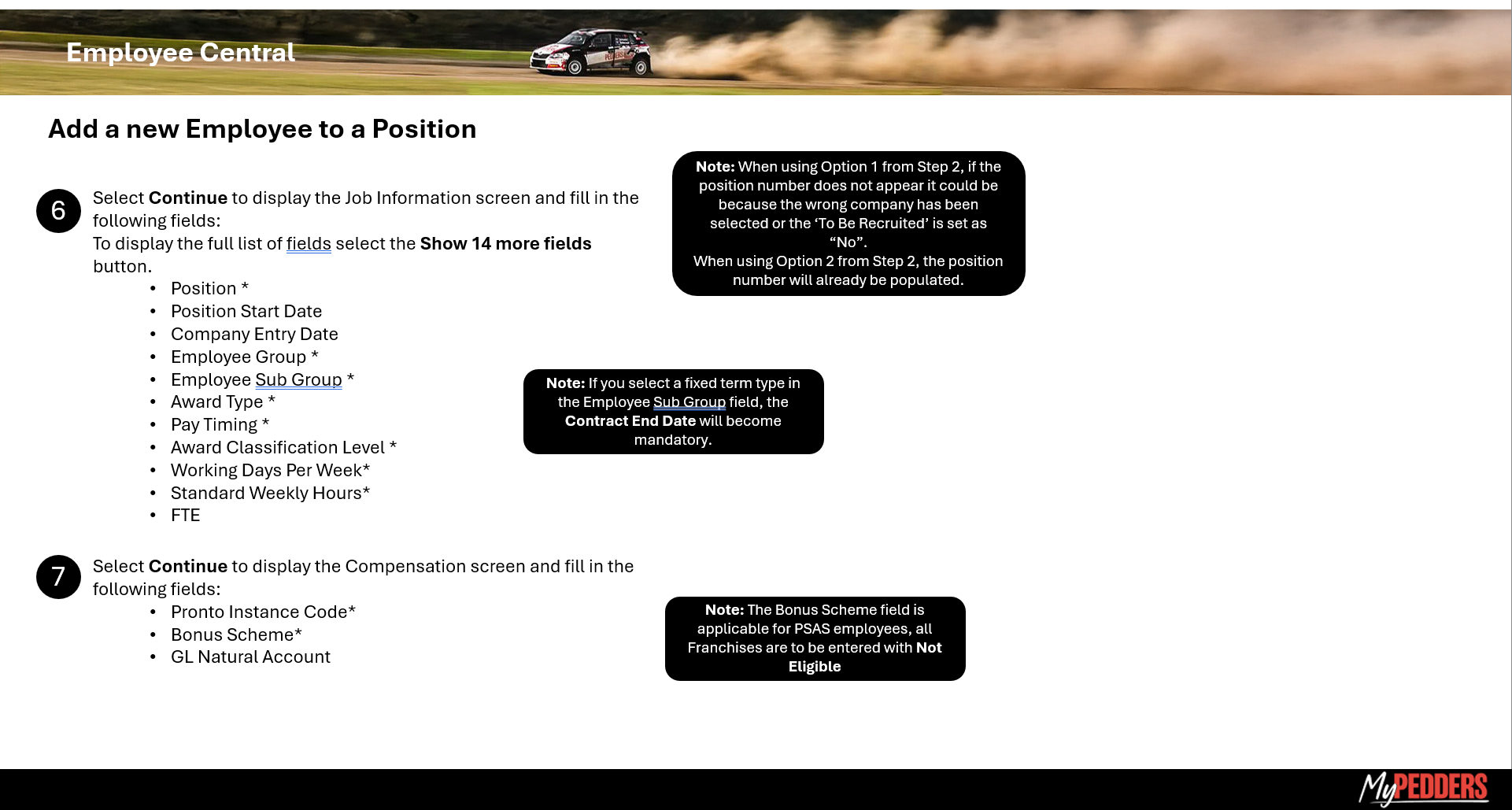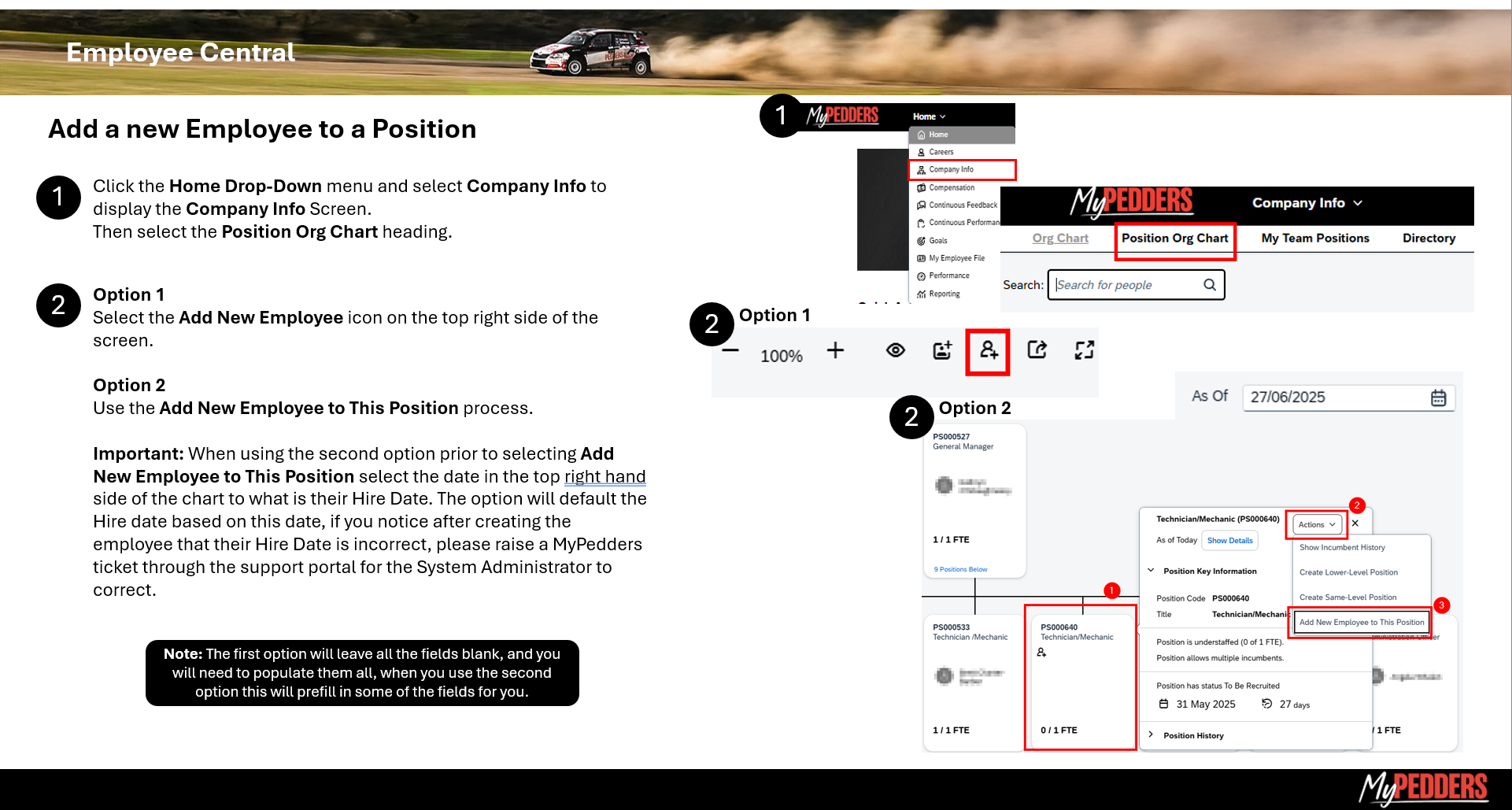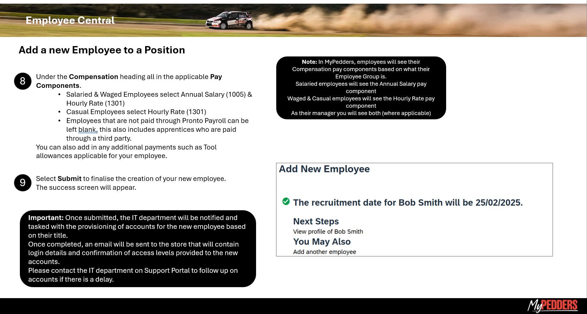 MyPedders MSS Create New Employee