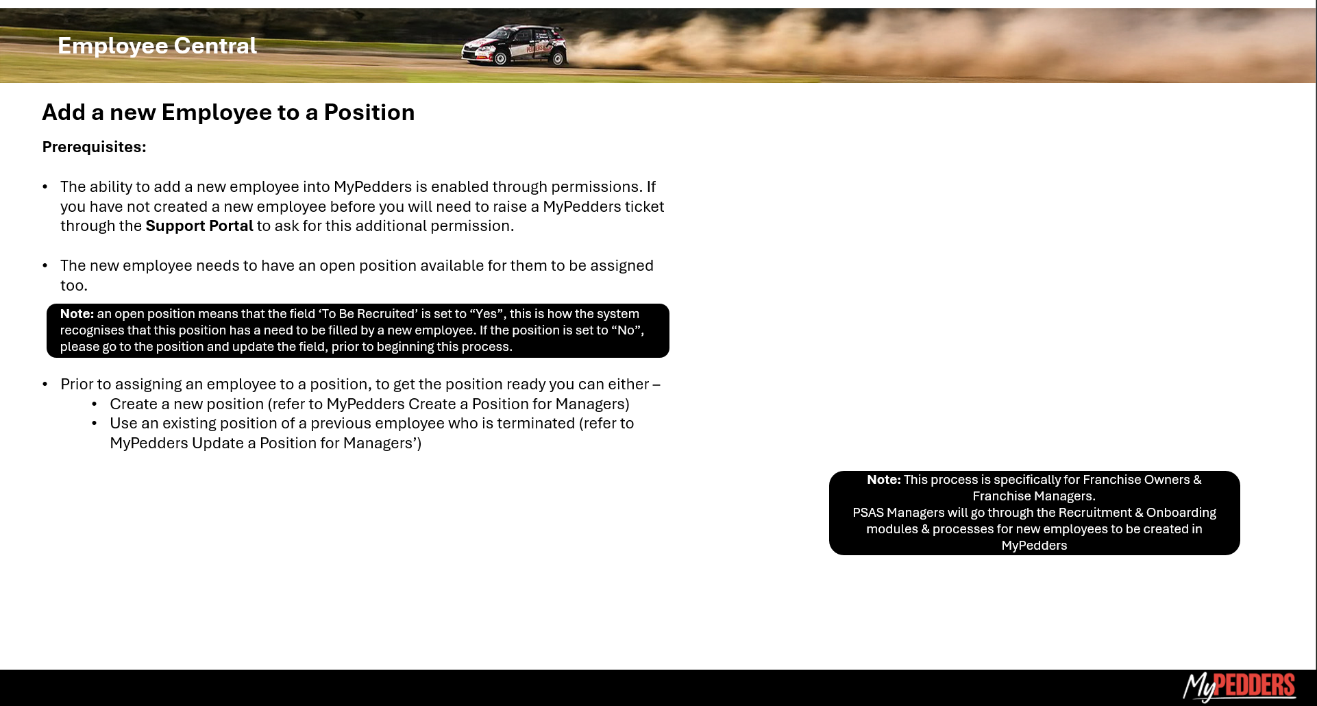 MyPedders Create a Position for Managers