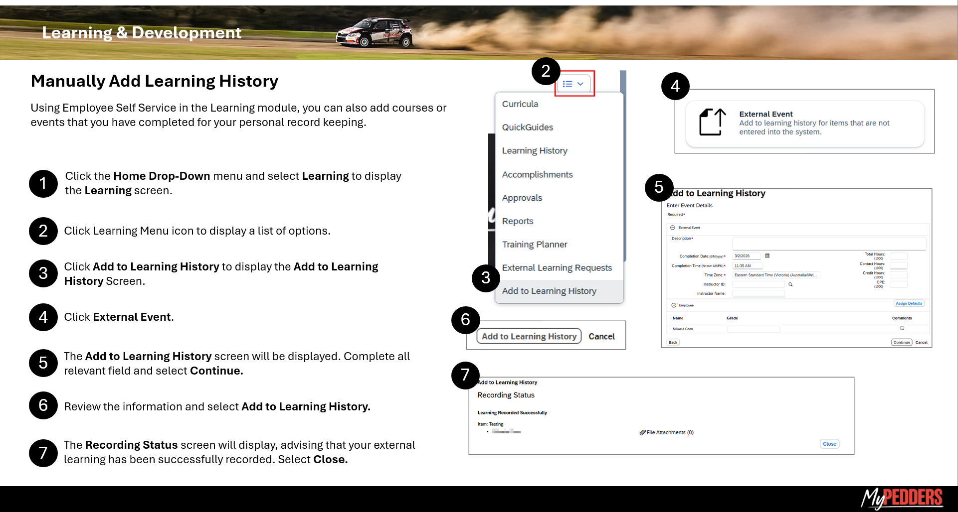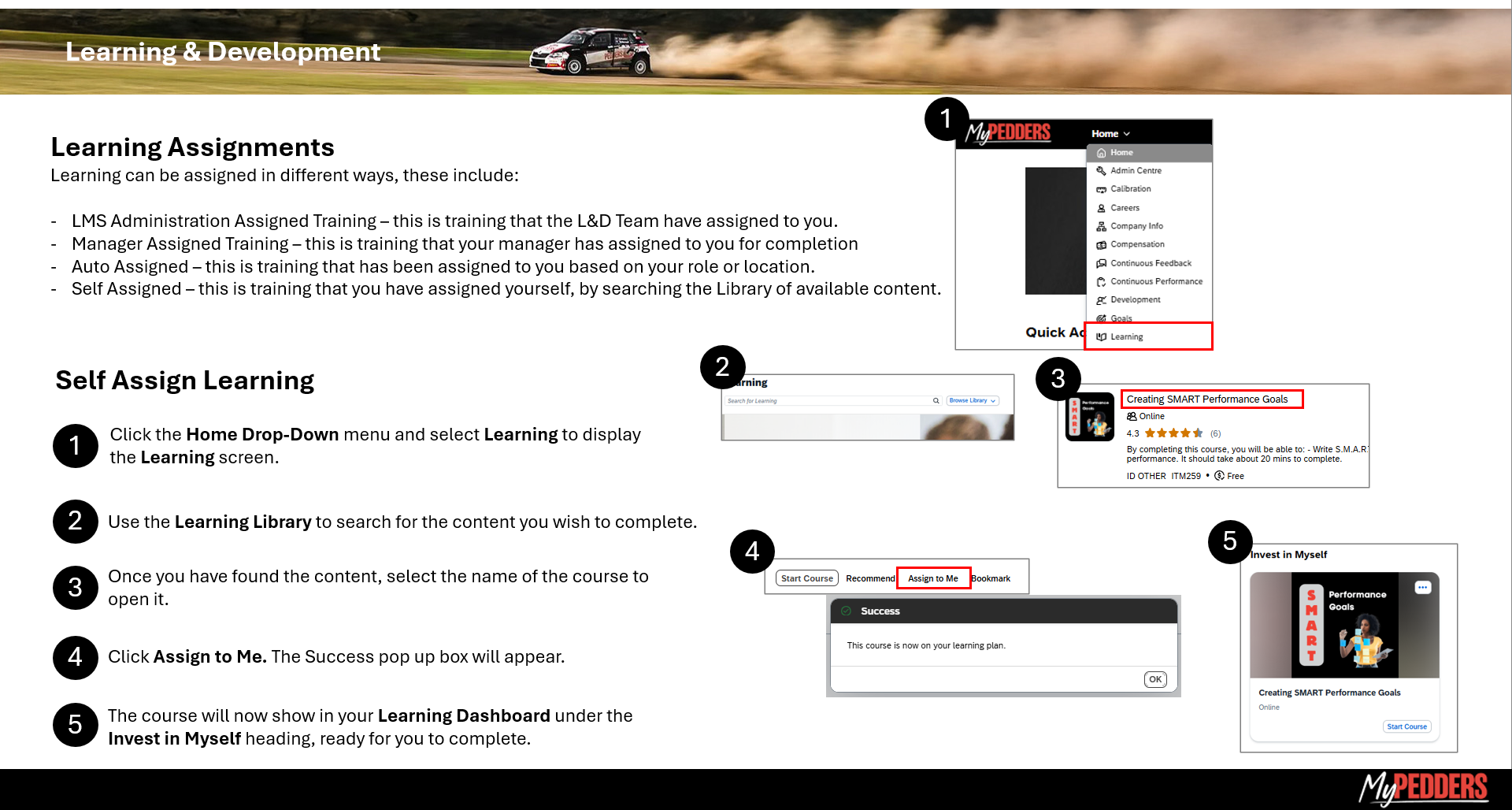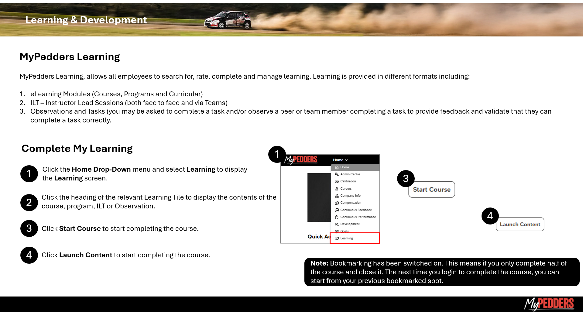 MyPedders Learning Dashboard Navigation