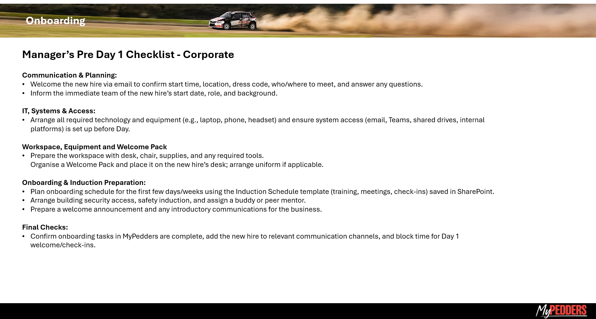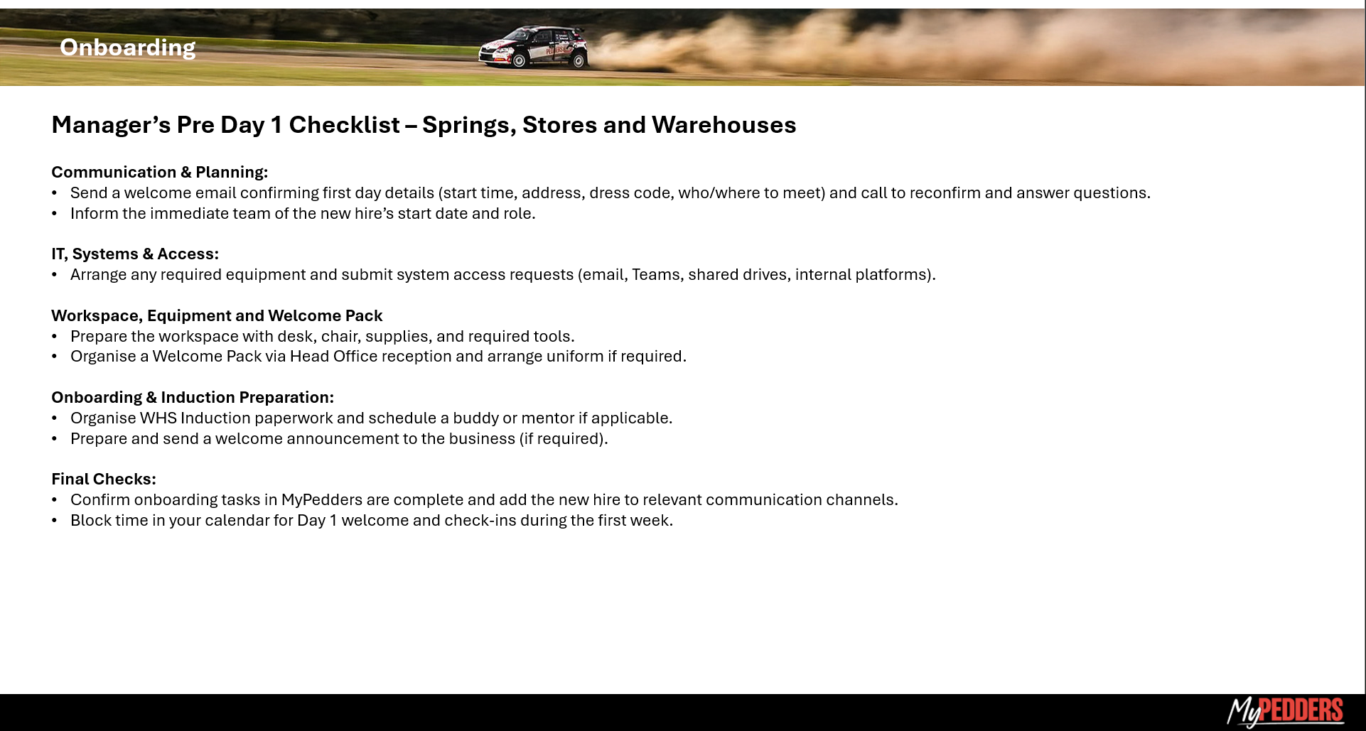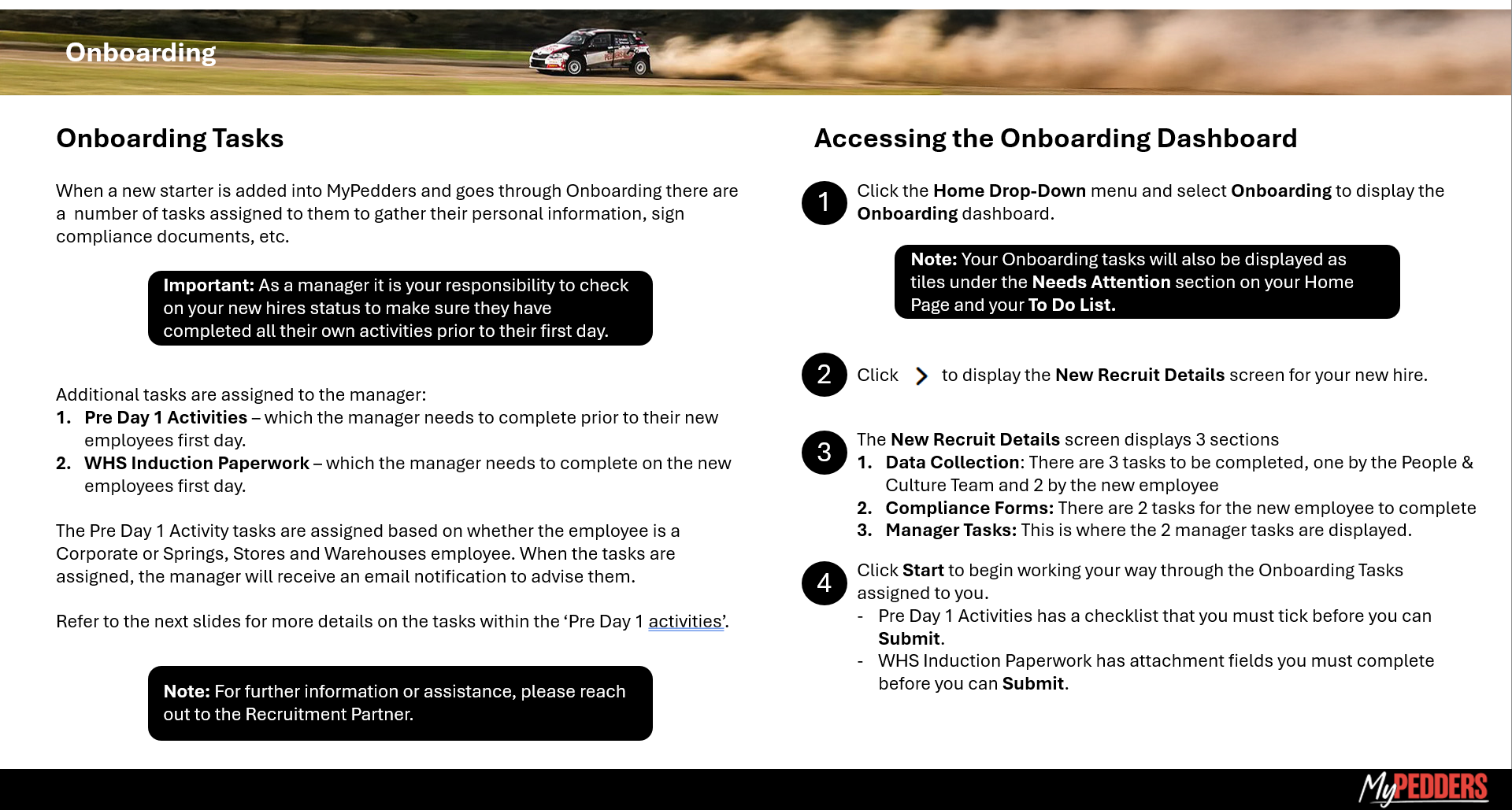 MyPedders Onboarding Tasks Information