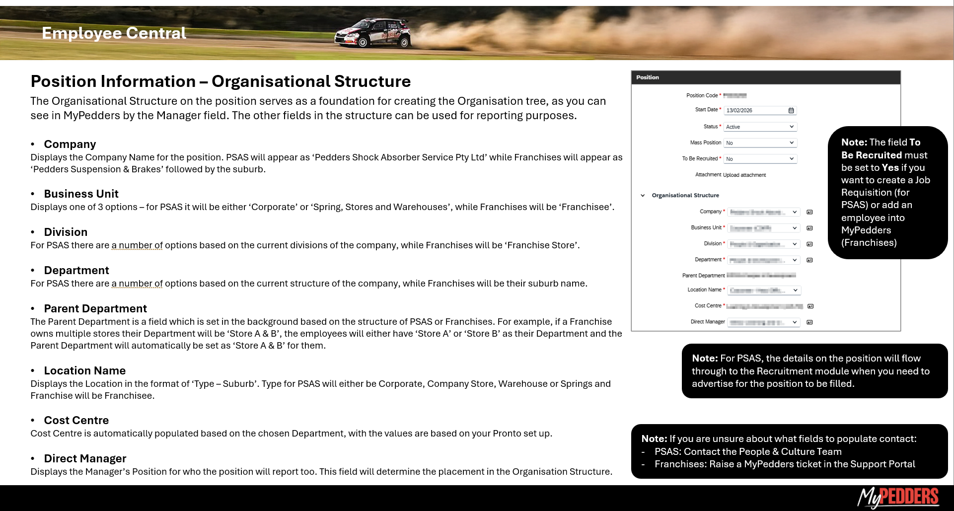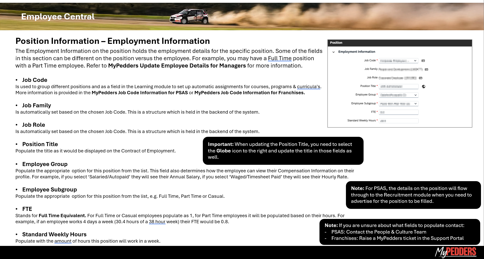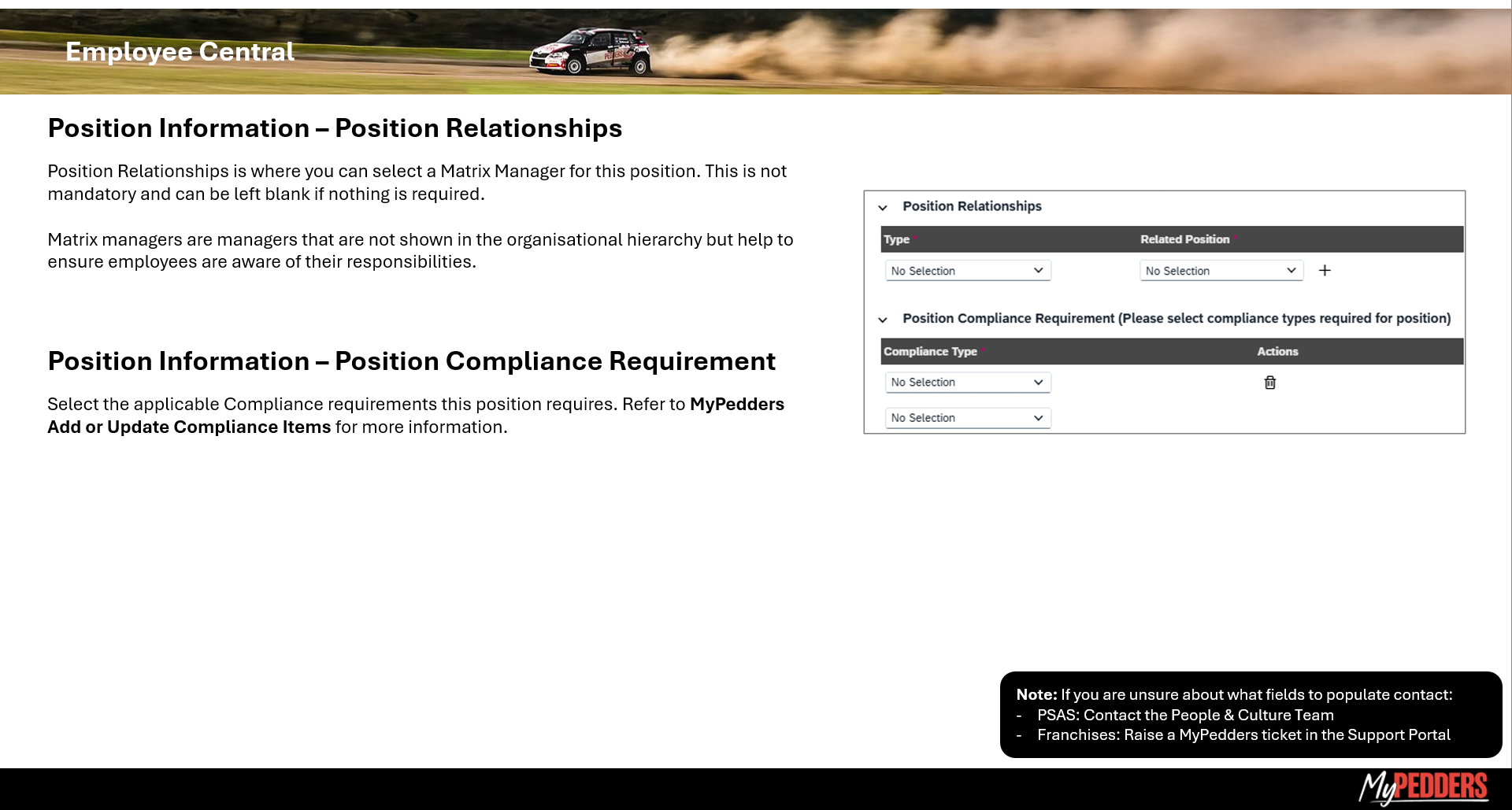 MyPedders Position Information for Managers