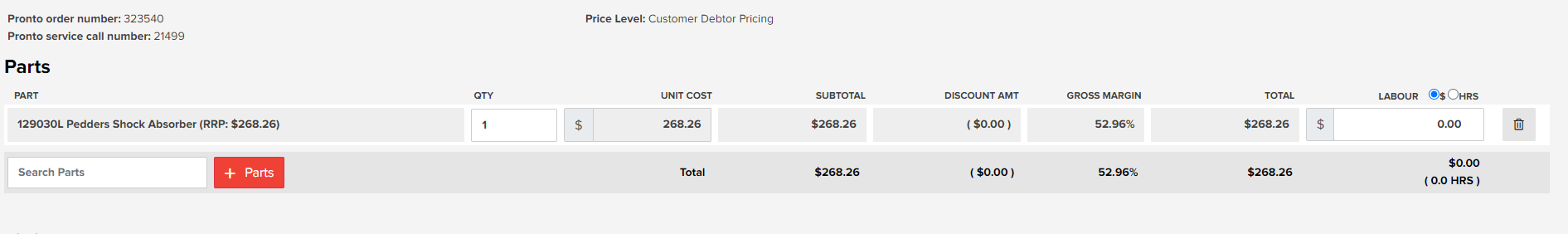 Make the Customer booking for the Warranty replacement with the part that is being replaced on the Service Parts and Labour page and select the Warranty Service item, entering details of the issue into the comments field.